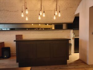 • Industrial/coffeeshop vibe